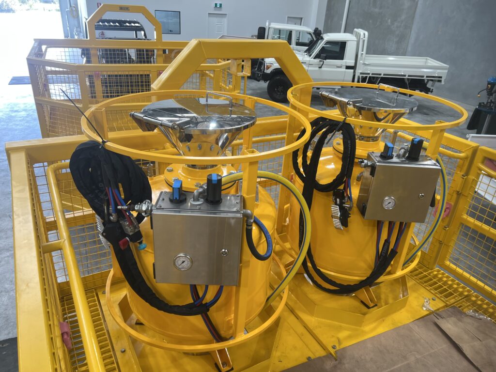 The ELM certified, WorkSafe approved 250KG ANFO kettle series meets Australian standards and has been independently tested and verified. It is designed for safety and ease of use, operating as a stand-alone unit or integrated within a basket or machine frame. The system utilises a colour-coded air supply and actuation system, which is intended to reduce confusion through simplification understanding process. A stainless-steel waterproof enclosure houses the valving and regulators, supporting the durability of ancillary components and extending their life. This unit is supplied as a plug-and-play system, including all actuators, valves, and fittings necessary for immediate operation.