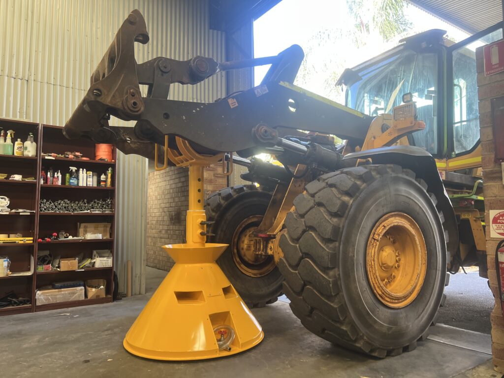 ELM certified Volvo loader Boom Stands provide safety and efficiency in service and repairs. Crafted from durable aluminium, these stands are designed to eliminate the potential for uncontrolled boom movement during service works. In addition, inbuilt castor wheels ensure effortless manoeuvrability on any workshop surface. The integration of Cradle slot within the stand, eliminates the need for cumbersome tie-down straps or chains. With an internal oil wastage tank to capture fluids and tool tray for storing tools during services times ensures a neat, tidy and slip free workspace. The stand has a specialty designed inbuilt gas strut mechanism allowing ease of movement for raising and lowering the cradle elminating manual handling. Built and certifed to australian standards with a rating of 7,500KG and weighing only 135KG, these stands are the ideal choice for seamless and safe maintenance work on Volvo loaders ranhes such as L120, L110,L90 and L70 series.